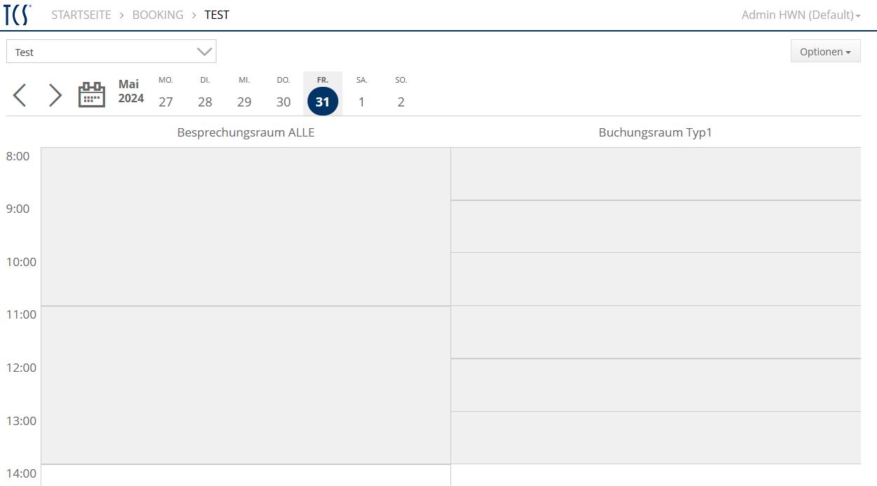 - In dieser Ansicht wird der, oder werden die für den aktuellen Benutzer zugänglichen Buchungsorte angezeigt