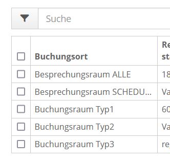 - In der Tabelle sind alle hinzugefügten, eigenständigen Buchungsorte enthalten