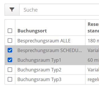 - Über das Suchfeld kann nach dem Namen des Buchungsortes gesucht werden, wenn es mal besonders viele Buchungsorte sind...