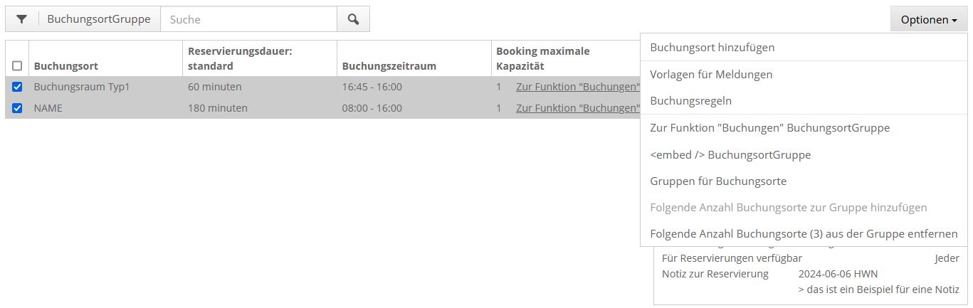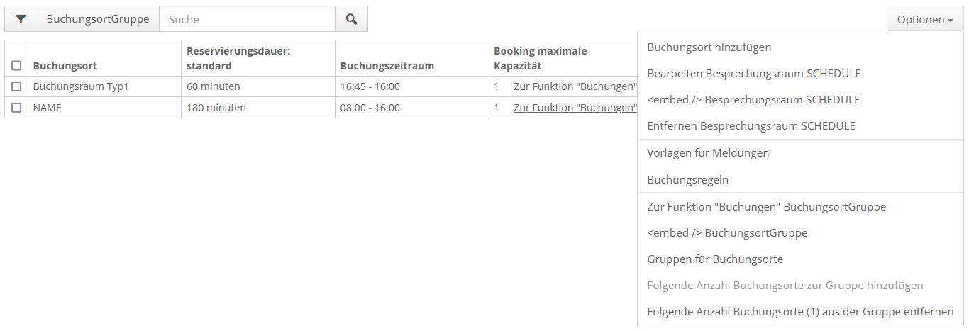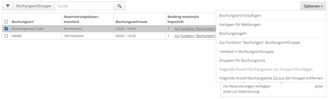 - Über das Suchfeld kann nach dem Namen eines Buchungsortes aus der Gruppe gesucht werden,