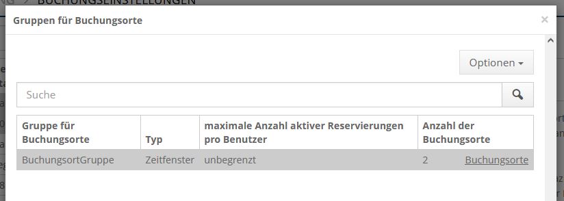 - einfacher Klick auf den Link öffnet eine Tabelle aller Buchungsorte, welche dieser Gruppe zugeordnet sind zur Bearbeitung