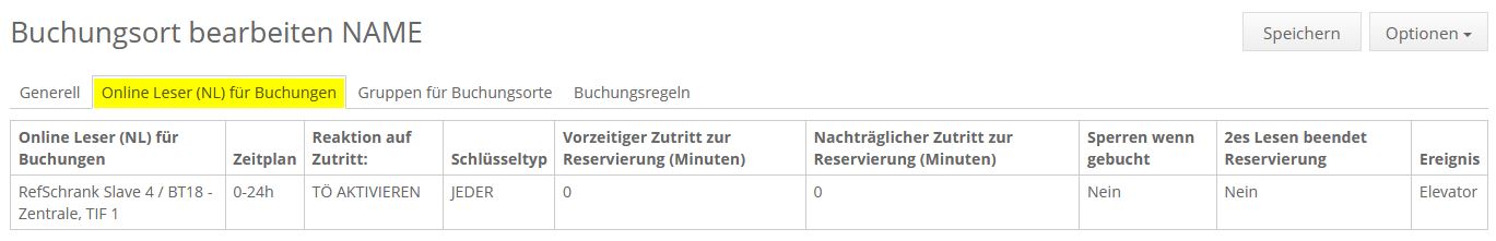 Weitere Register: [Generell] [Online Leser (NL) für Buchungen] [Gruppen für Buchungsorte] [Reservierungsregeln]