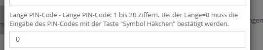 - PIN Codes können mit fester oder variabler Länge definiert werden