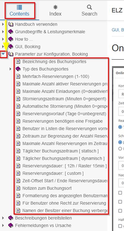 Parameter zur Konfiguration, Booking