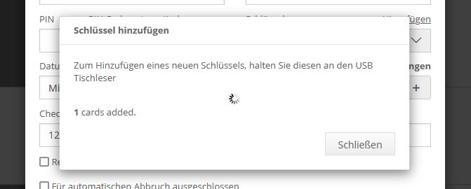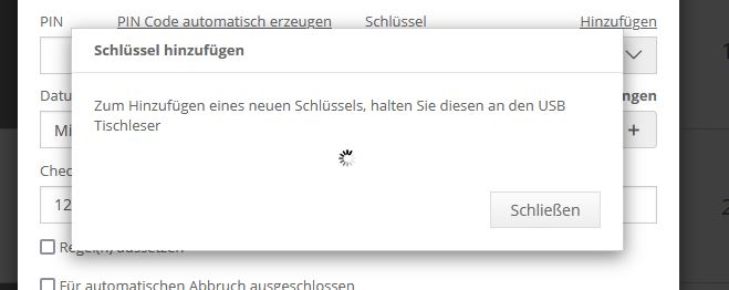 - Es wird erwartet, dass ein Schlüssel an den USB Tischleser gehalten wird
