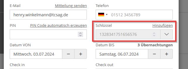 - Der Schlüssel wird jetzt in der Reservierung angezeigt
