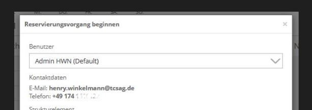 - das Bild zeigt unter dem Parameter Benutzer einen anderen Benutzernamen als der gerade reservierende Benutzer