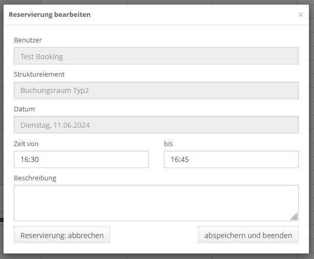 Reservierung bearbeiten entfernen TypUSER BOrt T_VR