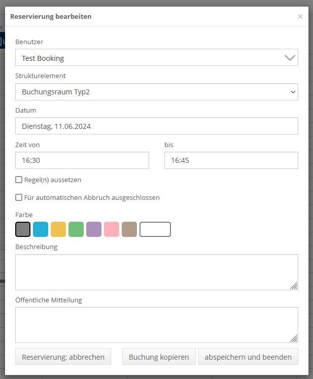 - mit dem Klick in das ausgewählte Feld wird diese Reservierung zur Bearbeitung geöffnet