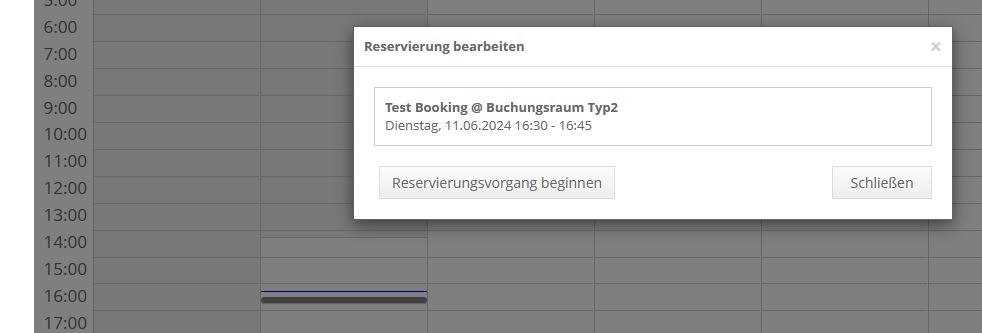 Aktion: Klick in den Kalender auf bestehende Reservierung