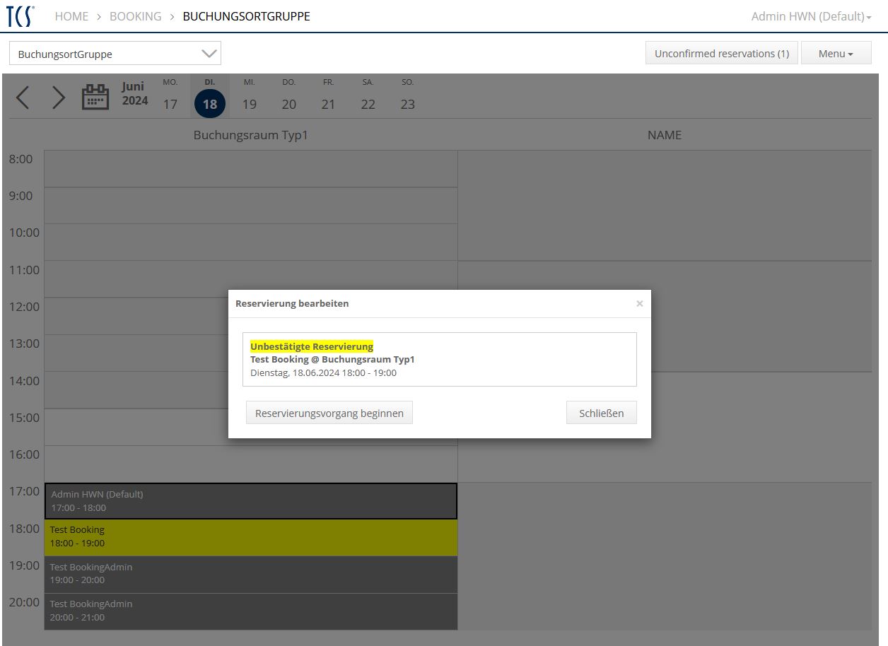 Klicken auf [ Reservierungsvorgang beginnen ] erzeugt die Freigabe der Reservierung