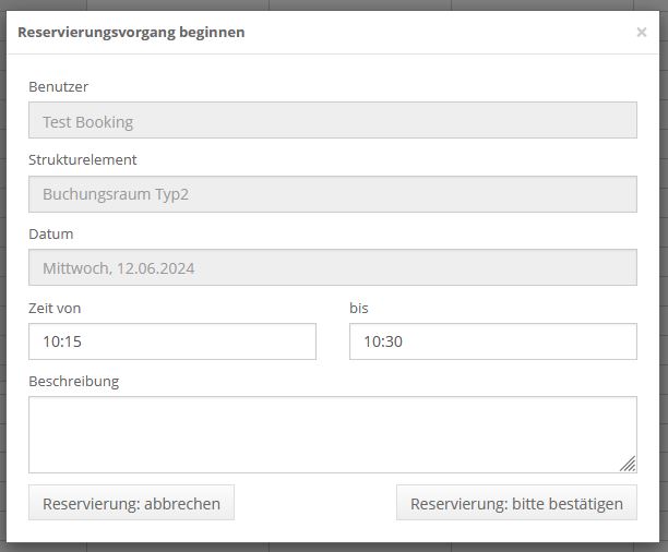 - Die auswählbare Uhrzeit hängt an dem für diesen Buchungsort definierten Zeitraster