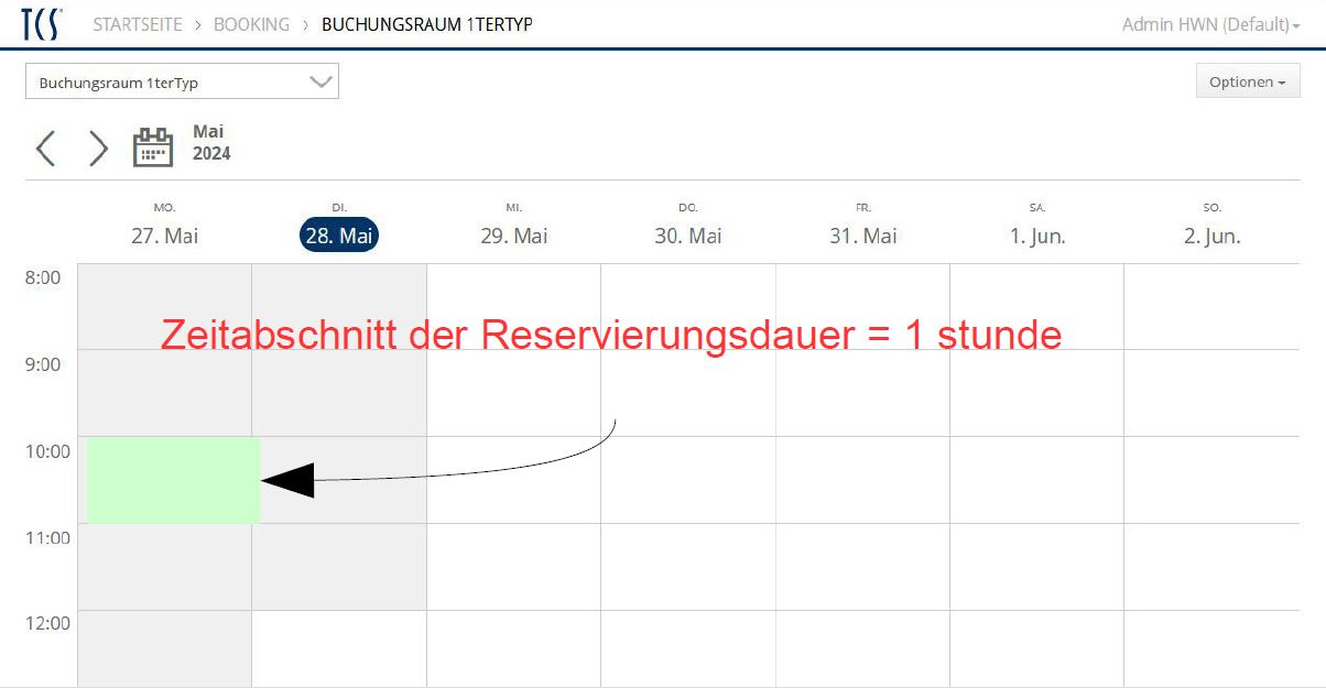 - die Reservierungsdauer wird auf die ausgewählte Zeitdauer eingestellt