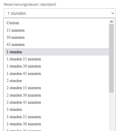 - die Reservierungsdauer kann von 15min bis maximal 12h gewählt werden und das in Schritten von 15min