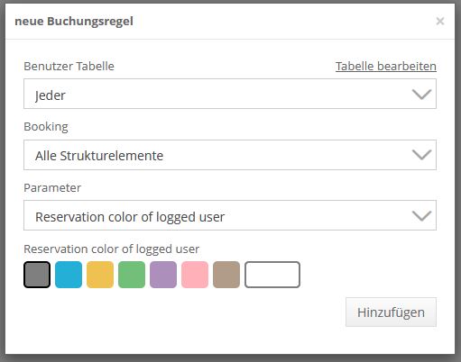 Reservierungsregel Typ: Default Farbe eingeloggter Benutzer