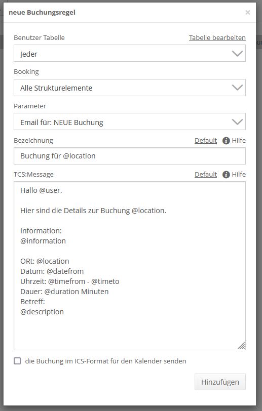- mit dieser Regel wird der Versand von EMail-Nachrichten nach dem Hinzufügen einer Reservierung definiert