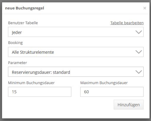 - die Reservierungsdauer definiert den Zeitraum, innerhalb dessen Reservierungen ausgeführt werden können