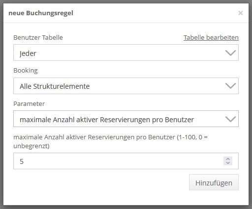 Reservierungsregel Typ: maximale Anzahl aktiver Reservierungen pro Benutzer