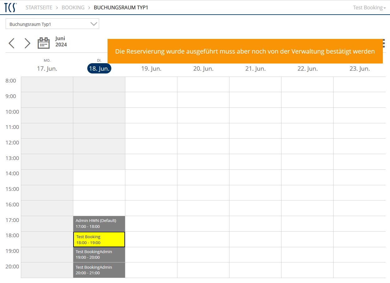 - soll die Reservierung erst nach der Freigabe durch einen weiteren Benutzer (BookingAdmin) gültig werden, dann muss diese Option für einen Buchungsort aktiviert werden