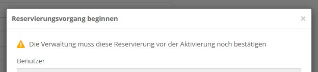 - wenn die Freiagbe für die Reservierung an einem Buchungsort aktiviert ist, dann erhält ein Benutzer (nur für Typ=Benutzer mit Login) einen Hinweis