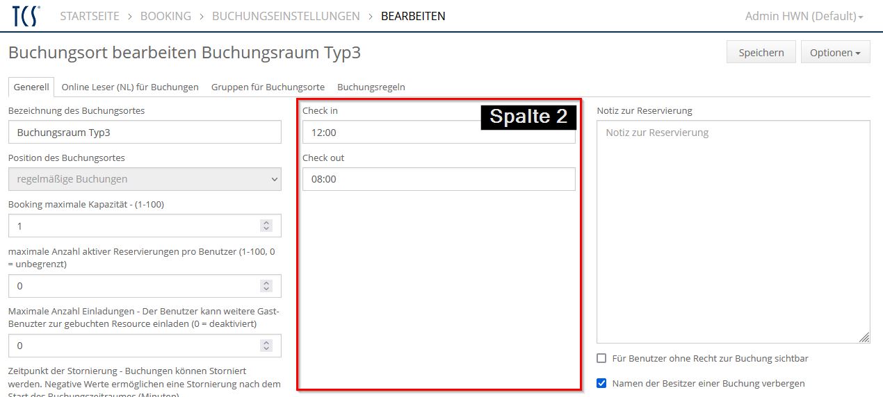 - Erfassung der Spalte 2 Parameter zum Typ des Buchungsortes: Regelmäßige Reservierung