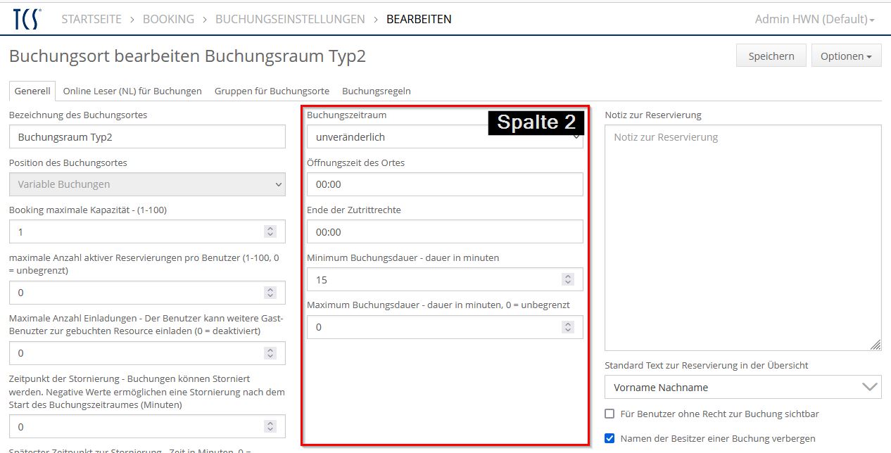 Buchungsort bearbeiten / Spalte 2 / zum Typ: Variable Reservierung