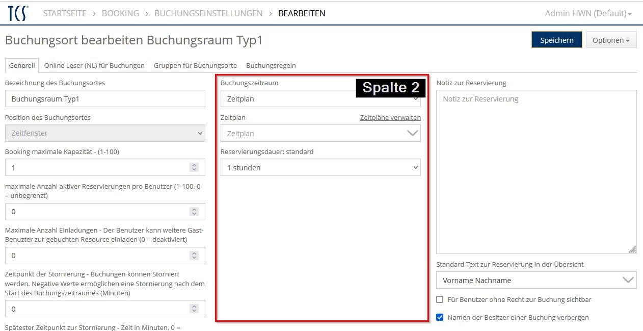 Buchungsort bearbeiten / Spalte 2 / zum Typ: Zeitfenster Reservierung