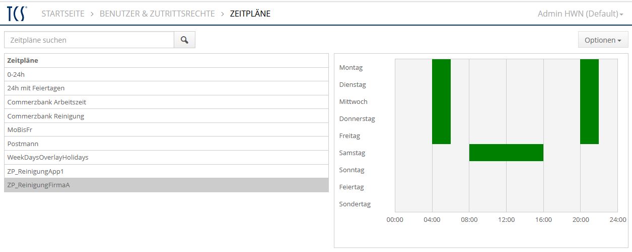 - ein vordefinierter Zeitplan aus der Liste aller Zeitpläne