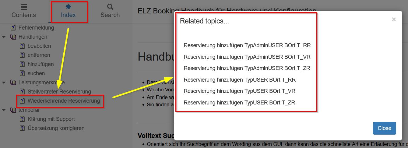 - Verwenden Sie die im linken Bereich aufgeführte Funktion INDEX / STICHWORT
