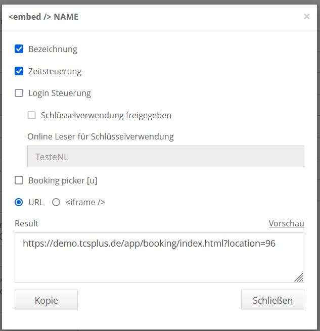 - Aktiviert die statische Anzeige des Kalendernamens = Buchungsort in der Anzeige des eingebetteten Codes